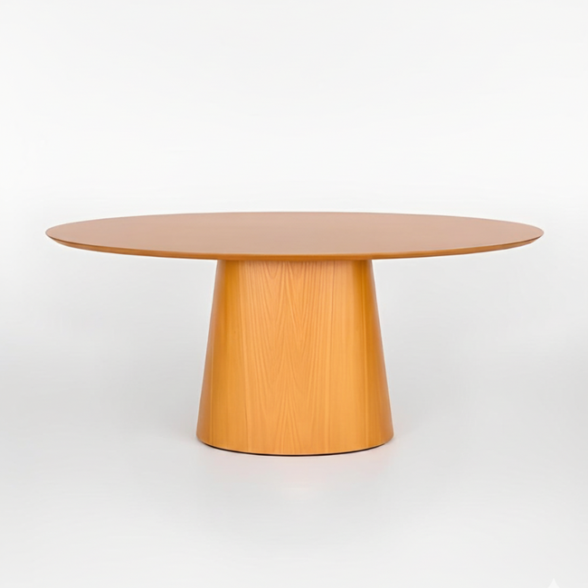 O formato oval da Mesa de Jantar Genebra proporciona melhor circulação no ambiente, além de criar uma atmosfera mais acolhedora e elegante. Seu design contemporâneo valoriza a sala de jantar, tornando o espaço visualmente mais leve e sofisticado, ideal tanto para ambientes amplos quanto para composições mais modernas.
