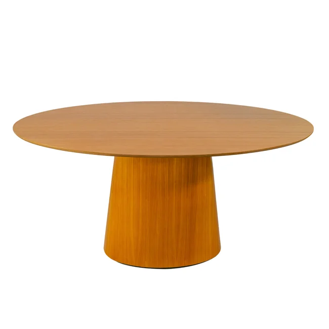 A Mesa de Jantar Genebra é a expressão máxima do equilíbrio entre sofisticação e funcionalidade. Com um tampo oval de acabamento impecável, esta peça se destaca por sua base cônica escultural, que confere uma presença sólida e moderna ao ambiente, transformando qualquer refeição em um evento de puro estilo.